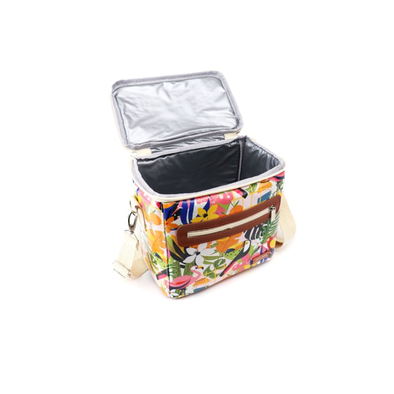 Com uma explosão de cores traz uma estampa linda, cheia de elementos tropicais presentes na nossa fauna e flora, como o tucano, flamingo, frutas e vegetação exuberante, a Bolsa Térmica Move Mini Tropical é simplesmente maravilhosa. Confeccionada em tecido sintético, tem forro térmico, com fechamento em zíper duplo, conta com uma alça de mão reforçada, e uma alça transversal regulável e removível para você transportá-la como quiser. E ainda tem um bolsinho frontal externo super charmoso. Um charme de térmica!