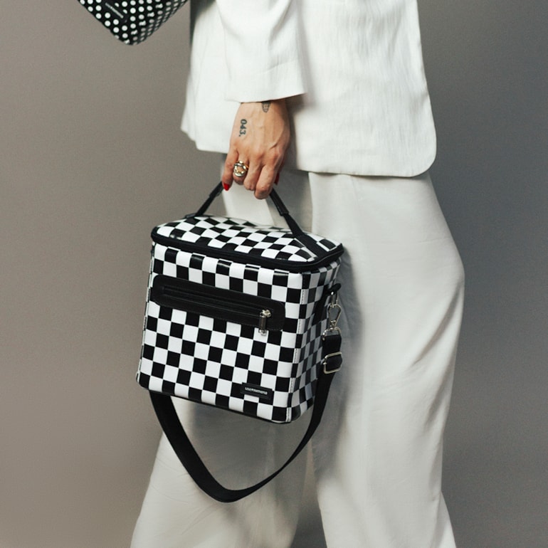 Uma térmica linda, moderna e cheia de estilo! A Bolsa Térmica Listrado Preto e Branco é tudo isso e muito mais! Ela é mais do que perfeita para você levar em todos os cenários do seu dia a dia, seja na faculdade, trabalho, academia e onde mais você quiser!