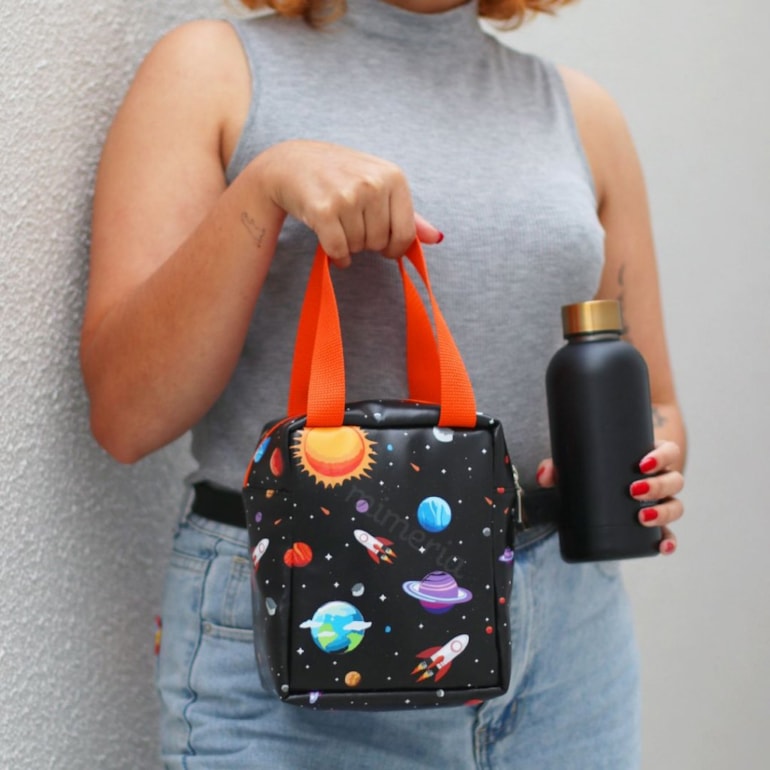 A Bolsa Térmica Pequena Universo é tudo o que você poderia querer! Nela, você pode guardar sua marmita fit, carregar sua comida para o trabalho e manter a temperatura do seu alimento.