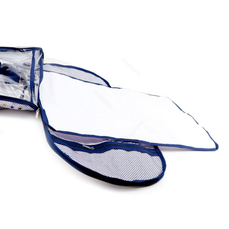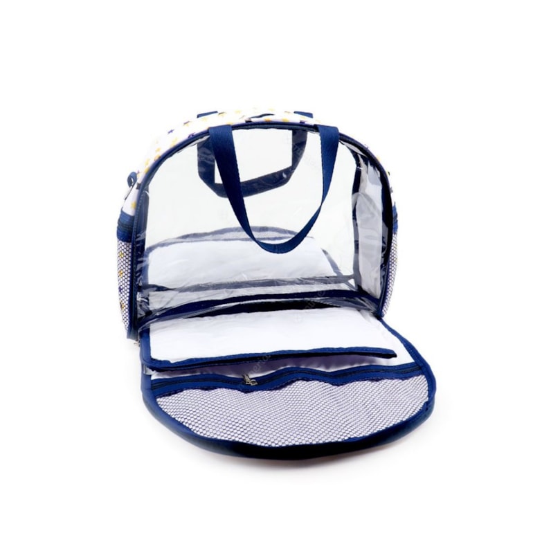 Majestosa e dona de um design prático, ela conta com uma bolsa transparente central, acompanhada de dois zíperes laterais que quando se abrem, dão espaço pra um trocador removível, e possibilitam uma abertura completa das laterais, além de flexibilizar o deslocamento de sua bolsa! Ela também conta com bolsos laterais internos, que são ótimos para lenços ou para descarte de fraldas, e também vem com duas aberturas em zíper, e dois bolsos laterais externos!