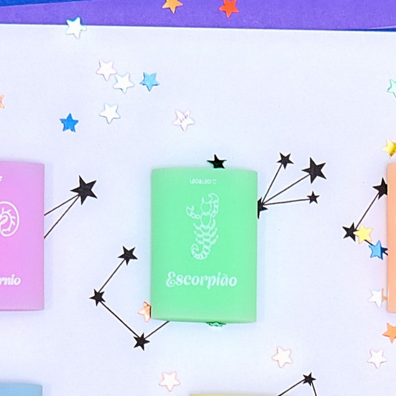Venha pegar a Borracha Signo de Escorpião Verde Pastel! Ela não pode ficar de fora do seu estojo, nem de fora do seu escritório. Aproveite e conheça toda a coleção.