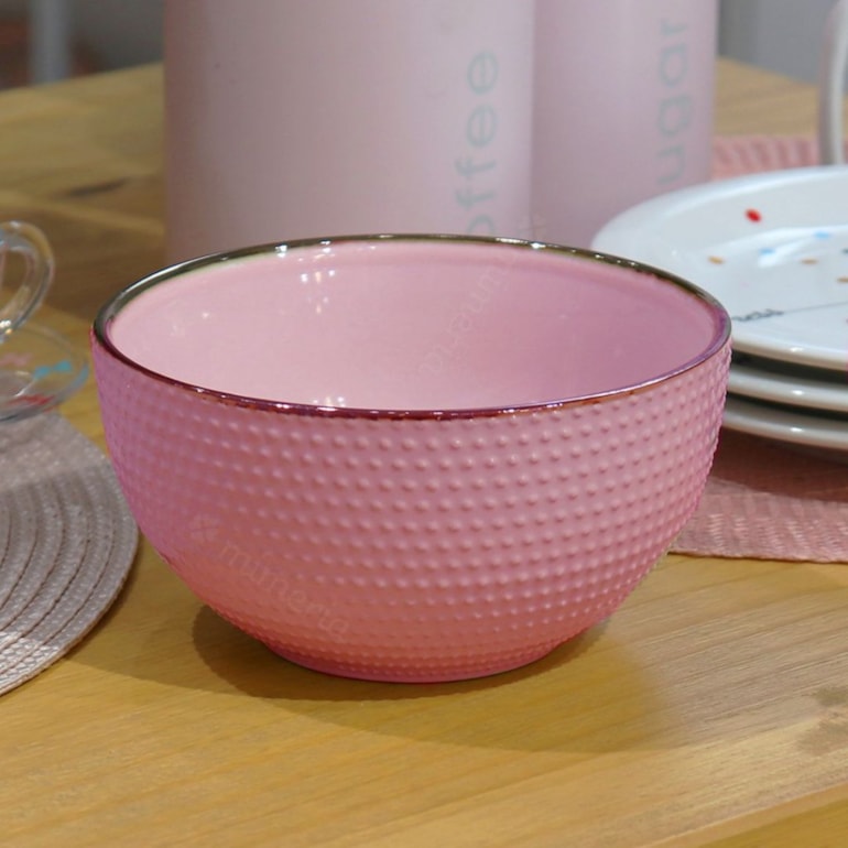 O Bowl em Cerâmica Kitchein Rosa possui a sua superfície formada por pequenas bolinhas em alto relevo, ele é ideal para servir petiscos, para comidas originadas na culinária oriental e também para pequenas porções de alimentos, vai deixar a decoração da sua cozinha um sucesso!