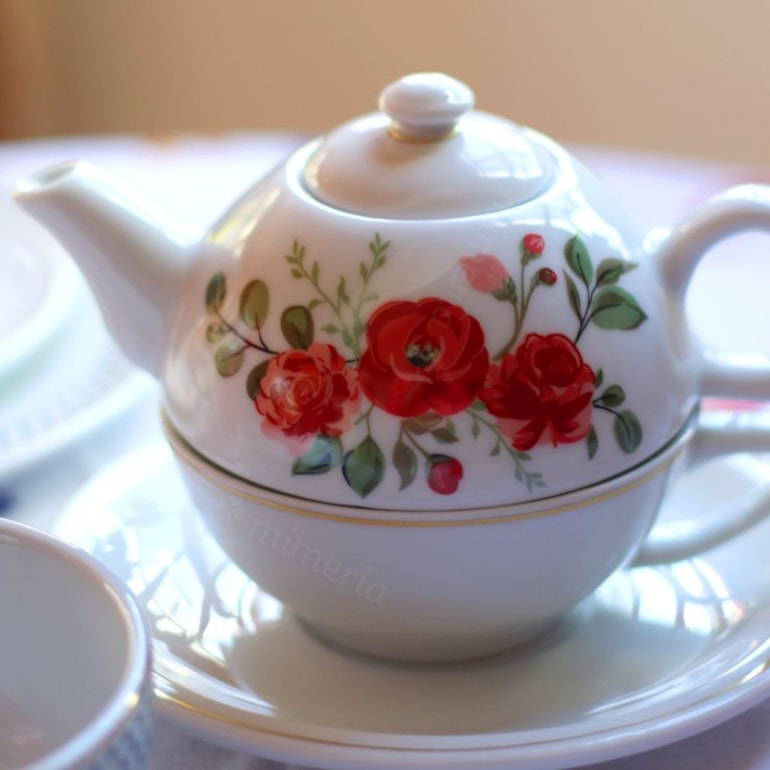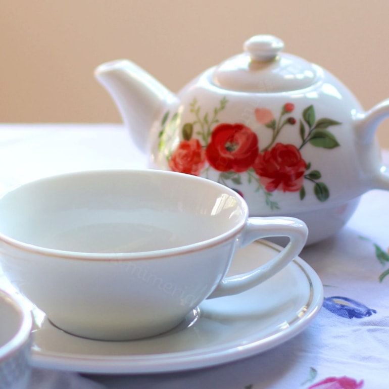 - Acompanha xícara, bule e pires;