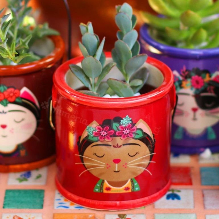 O Cachepô com Alça de Porcelana Gata Florida Vermelho Pequeno é ideal para pequenas suculentas e plantinhas similares ou para ser usado como item decorativo, ele vai deixar a sua casa muito mais original e divertida!