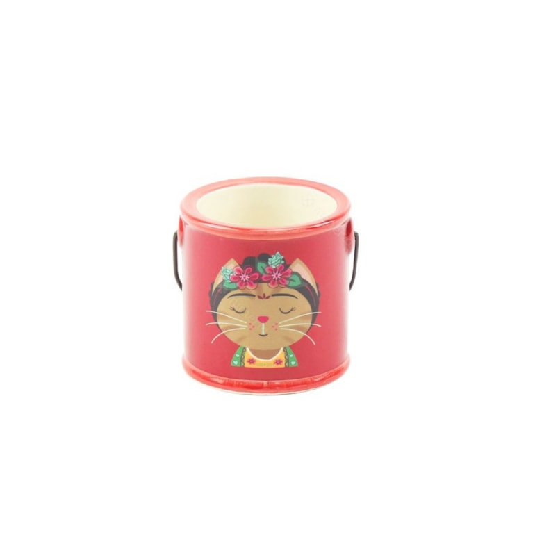 O Cachepô com Alça de Porcelana Gata Florida Vermelho Pequeno é tudo o que você queria e não sabia! fofíssimo, ele vem no formato de um baldinho com alças e é um mimo incrível!