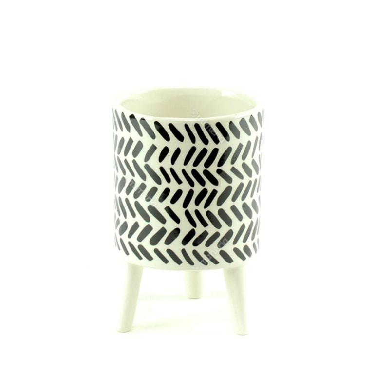 Com design clean, este cachepô conta com três pés de apoio e vem com a parte externa estampada com traços pretos em fundo branco. Ideal para decorar ambientes com classe e sobriedade.