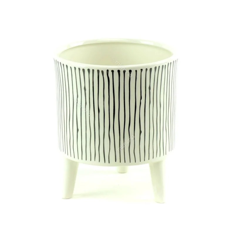 O Cachepô de Cerâmica com Pés Linhas Grande tem design clean e cores neutras com estampa de linhas pretas em fundo branco. Um charme de peça para você colocar plantinhas e decorar sua casa!