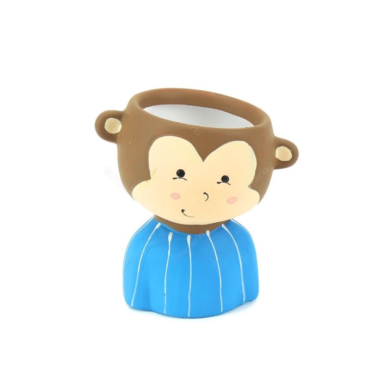 Produzido em cerâmica, este cachepô tem lindo design em forma de um macaquinho com roupinha azul super fofo. Perfeito para colocar flores e outras plantinhas e enfeitar sua mesa, escrivaninha, bancada, rack, painel de TV e muito mais!