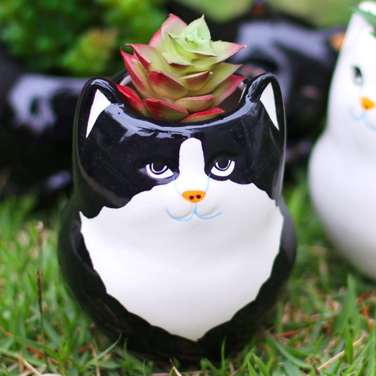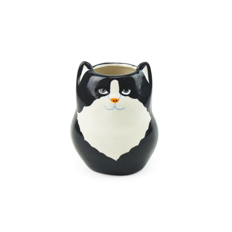 Para os meus cat lovers de plantão, Cachepô em Porcelana Gato Preto e Branco vai se tornar o ponto alto da sua decoração!