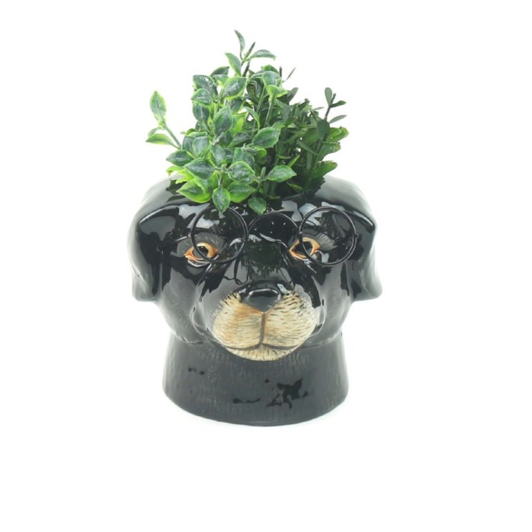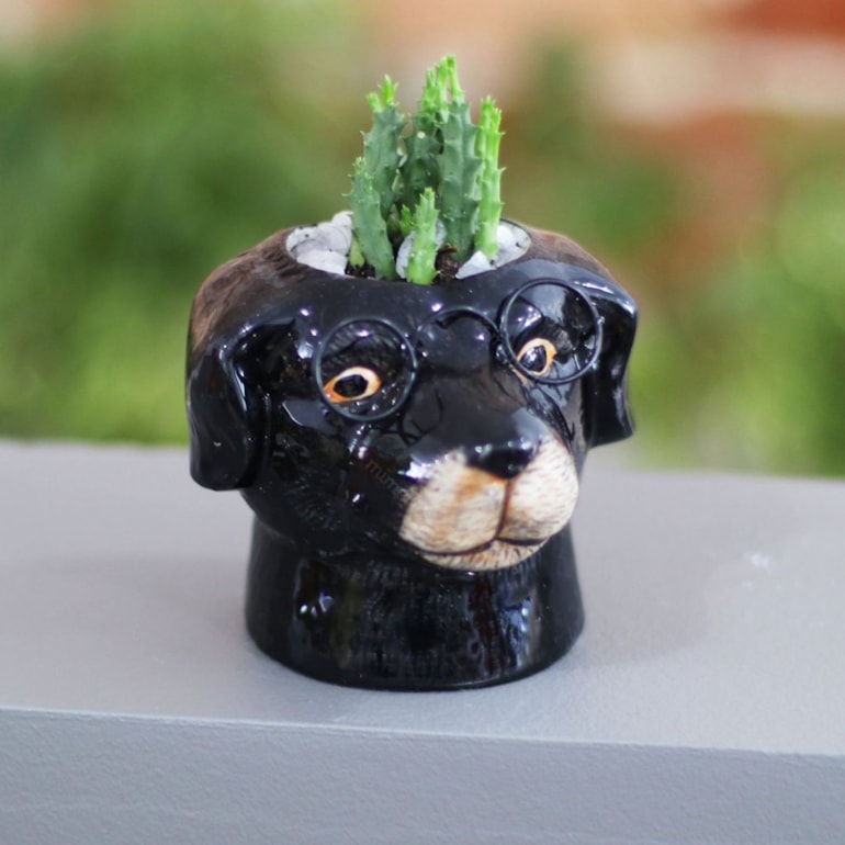 O Cachepô Cachorro com Óculos Preto é a coisa mais fofa do mundo inteiro! Mega divertido, ele vem no formato de um doguinho muito culto que usa um par de óculos, é um mimo encantador!