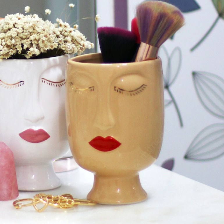 Com o Cachepô em Porcelana Face Bege Pequeno a sua decoração vai ficar completamente impecável! Ele também pode ser usado como item decorativo, porta objetos e para sua usual função de cachepô, fica incrível de todas as formas!