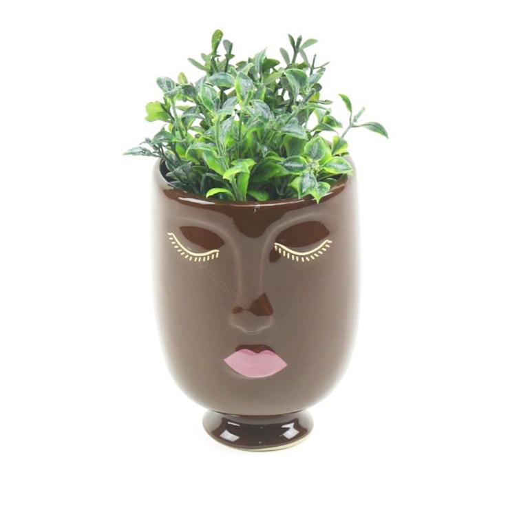 - Cachepô em Porcelana Face Marrom Pequeno;