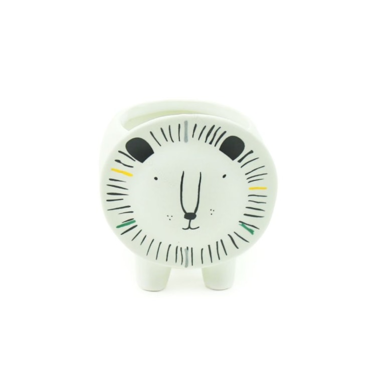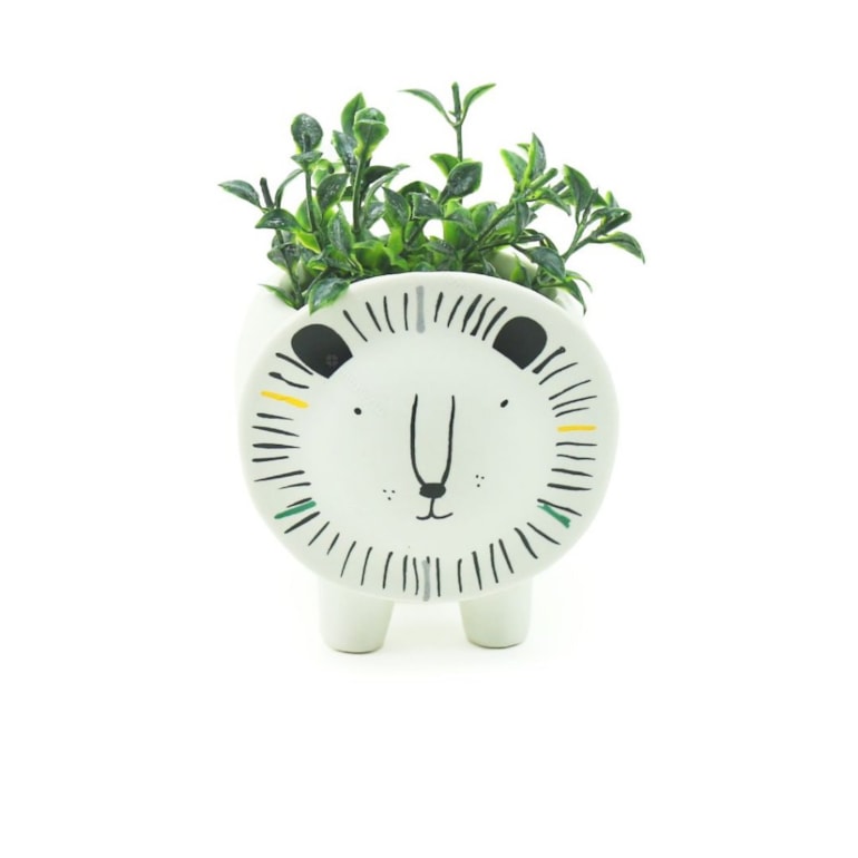 O Cachepô em Porcelana Leão Branco Pequeno vem trabalhado com a estampa de um leão fofo com traços minimalistas e três pezinho de apoio, ele é exatamente o que te faltava!