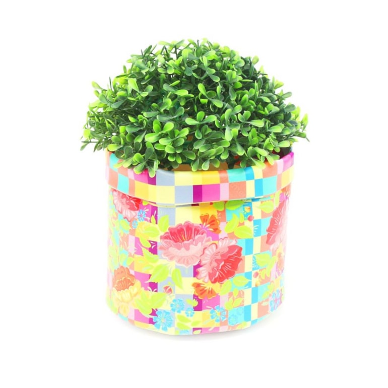 O Cachepô de PVC Estampado Bem Me Quero Grande vem todo estampado em um lindo padrão de quadriculados coloridinhos com flores lindas estampadas, ele é tudo o que você precisava!