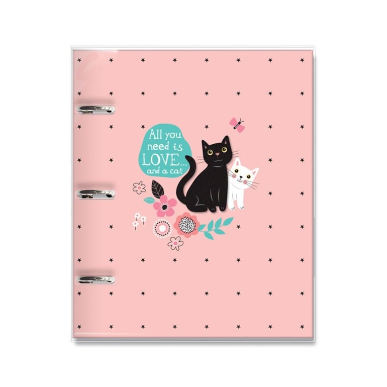 O Caderno Argolado Fichário Gatos é simplesmente lindíssimo! Com capa dura estampada com uma frase inspiradora, como: “All you need is love... anda a cat" As catlovers vão amar!!!