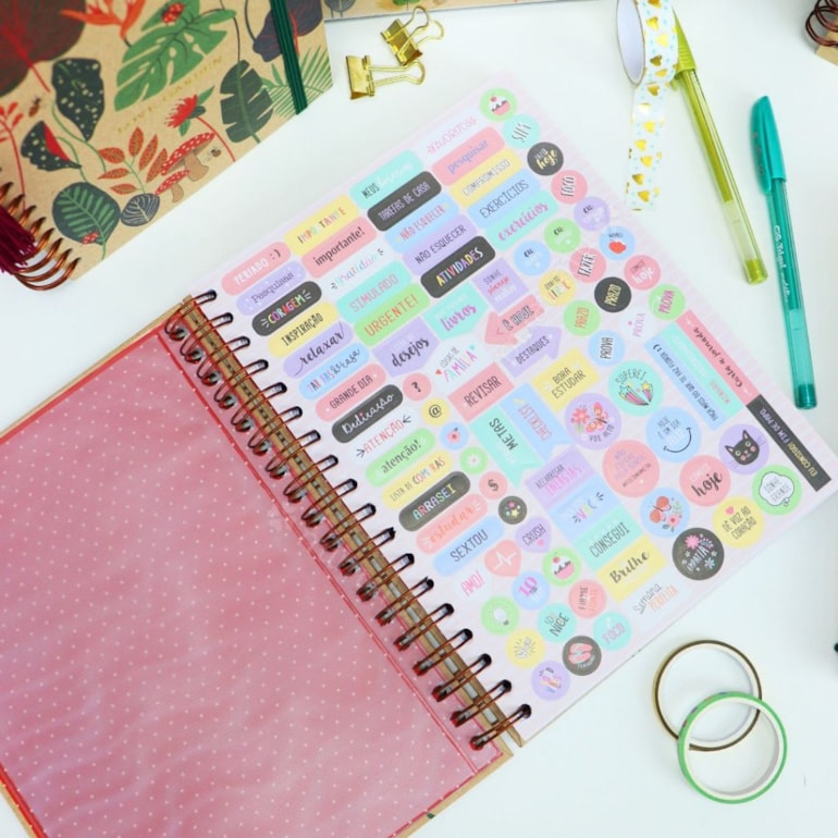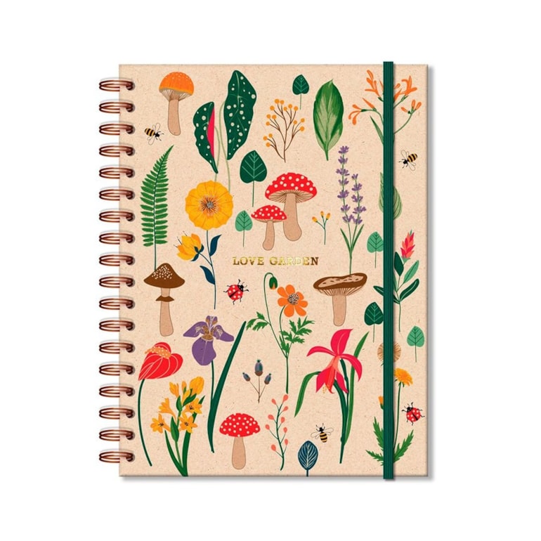 Ideal para te acompanhar na sua vida acadêmica e escolar, ele vem com 160 folhas pautadas e divisórias para facilitar a organização do caderno. Conta com 1 cartela de adesivos e 1 envelope plástico, ideal para armazenar documentos, lembretes e muito mais. Além disso, o design do produto é maravilhoso – capa dura, com fundo marrom e estampas de cogumelos, flores, joaninhas e fechamento em elástico. É uma verdadeira gracinha!