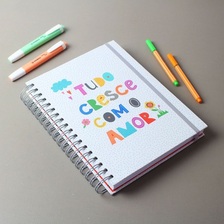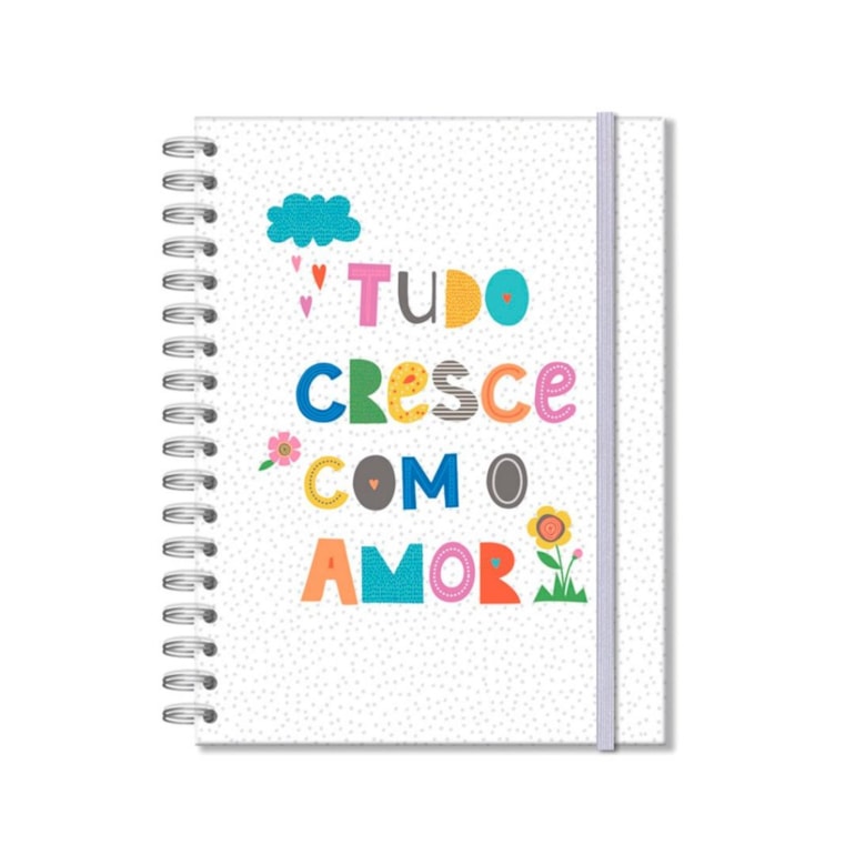 O Caderno Colegial 160 Folhas Frases Coloridas além de super usual tem linda estampa com a frase: “Tudo cresce com o amor” em fundo branco e detalhes de flores. Um verdadeiro mimo!