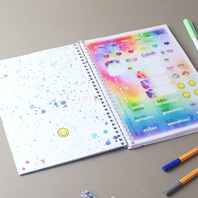 O Caderno Colegial Good Vibes Colorido Tie Dye 80 Folhas é um super mimo para você combinar com outros itens de papelaria da mesma coleção e começar o ano letivo com o astral lá em cima!
