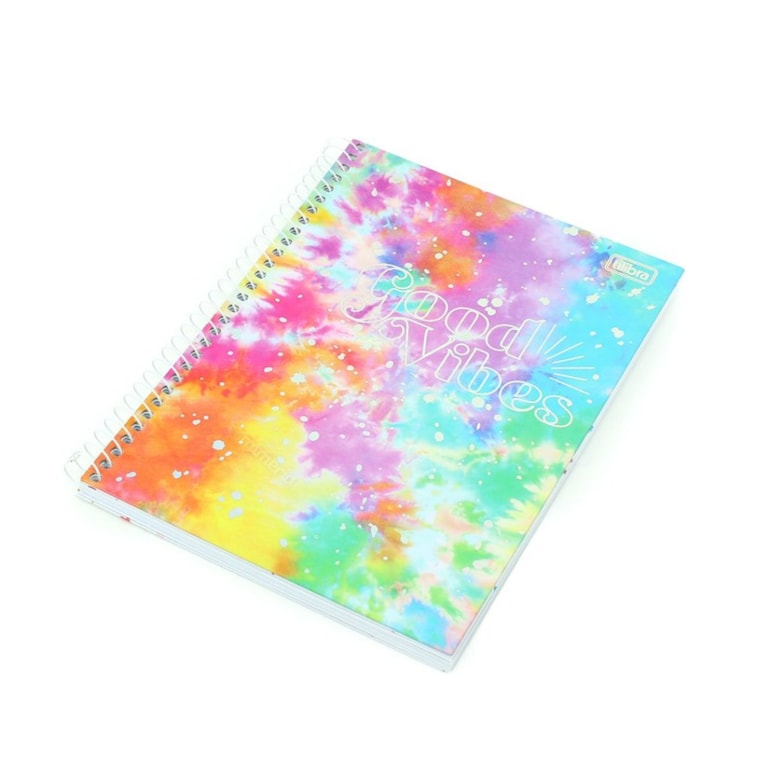 - Caderno Colegial Good Vibes Colorido Tie Dye 80 Folhas;