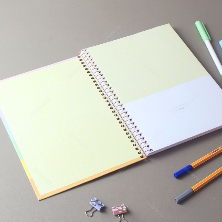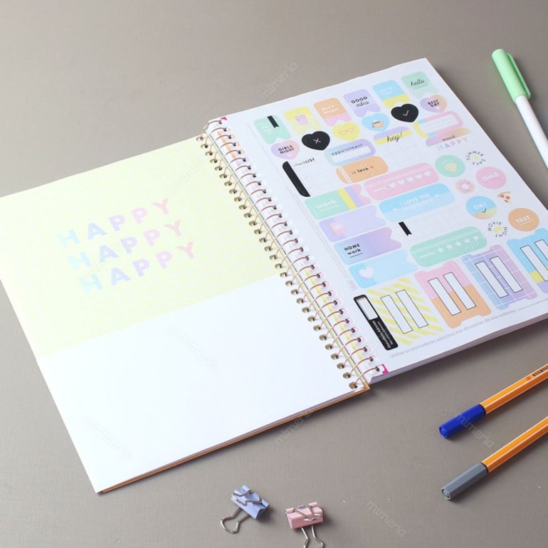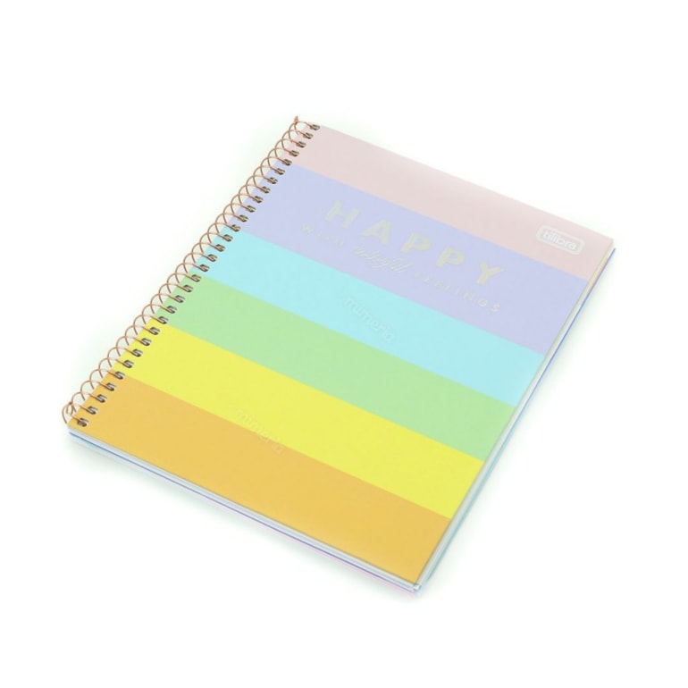 O Caderno Colegial Happy Color 80 Folhas Miolo Colorido tem capa colorida estampada com a frase: “Happy with beautiful feelings” em letras holográficas. Um verdadeiro mimo!