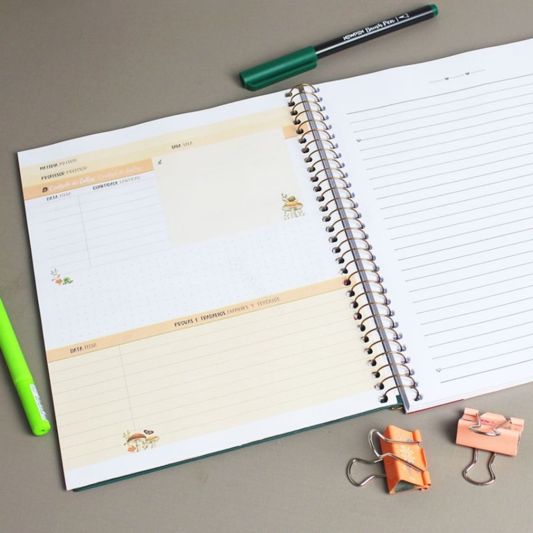 - Caderno Colegial Loveland Cogumelo Verde 80 Folhas;