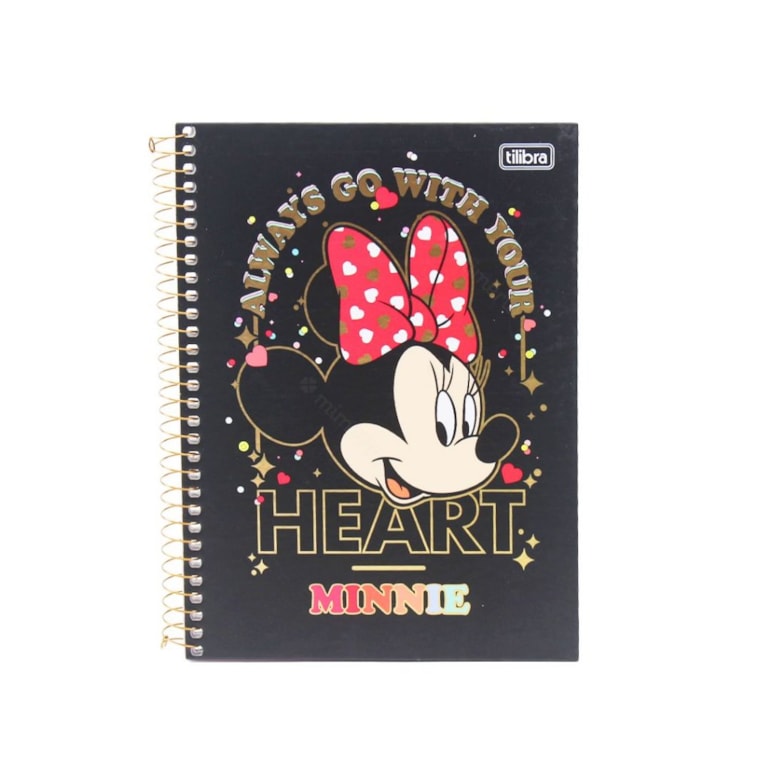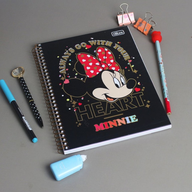Meta: O Caderno Colegial Minnie Go With Your Heart Preto 80 Folhas é o mimo perfeito que faltava na sua papelaria! Veja esse e outros produtos na Mimeria, compre pela internet e retire na loja!