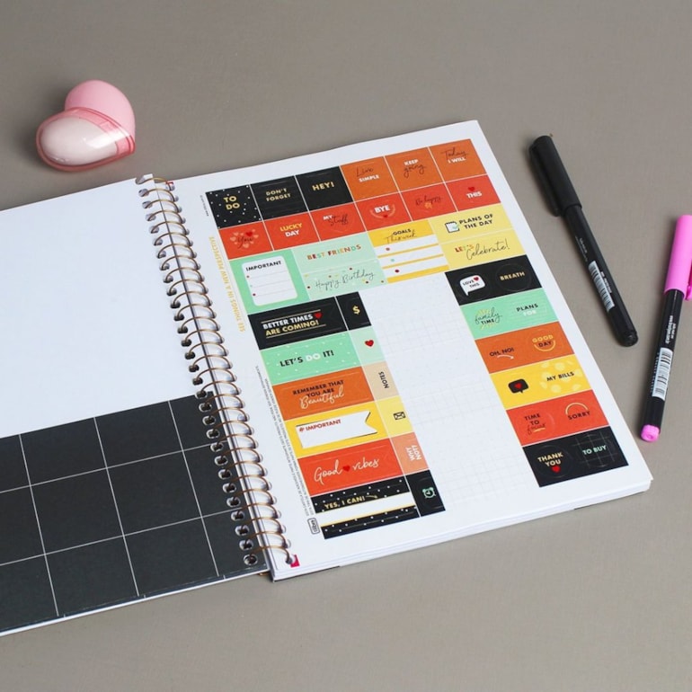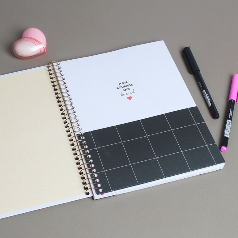 Super completinho, tem tamanho médio e é ótimo para ser usado durante a sua rotina, é compacto e cabe com bastante facilidade na sua bolsa! Ele possui ao todo 80 folhas pautadas, 1 envelope de papel e uma linda cartela de adesivos, é exatamente o que você precisava!