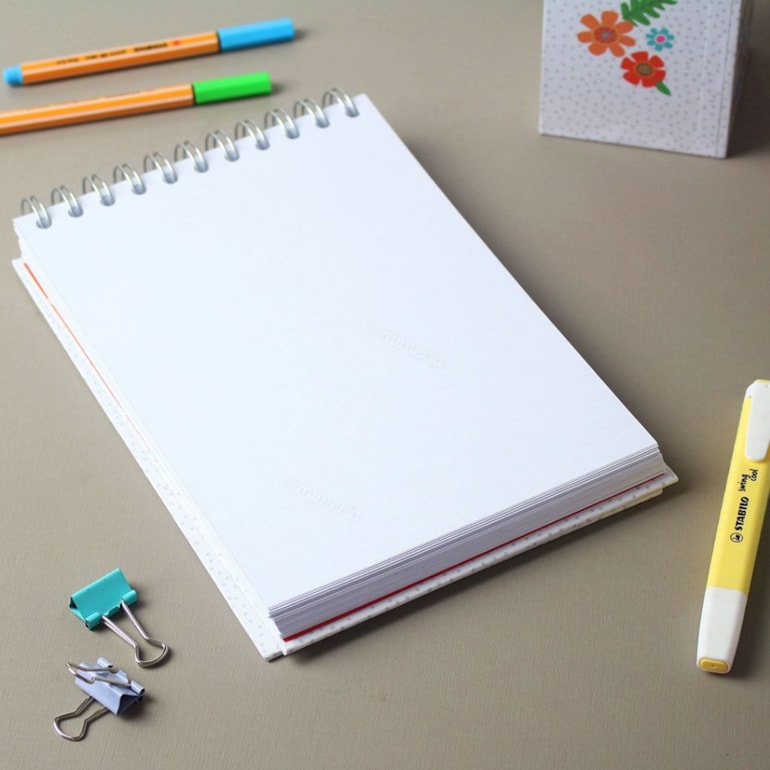O Caderno de Ideias Frases Coloridas tem acabamento wire-o, fechamento em elástico e vem com 80 folhas brancas para anotar ideias, fazer esboços, desenhos, rascunhos, mapas mentais e tudo o que você imaginar. Aproveite!