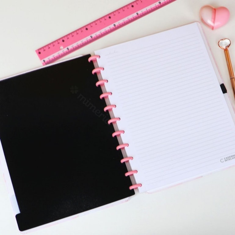 O Caderno Inteligente Eyeconic Médio possui folhas destacáveis e reajustáveis, ele pode ter suas folhas arrancadas e reposicionadas sempre que você precisar, além de poder ser completamente personalizado e remontado com o acréscimo de acessórios perfeitos escolhidos por você!