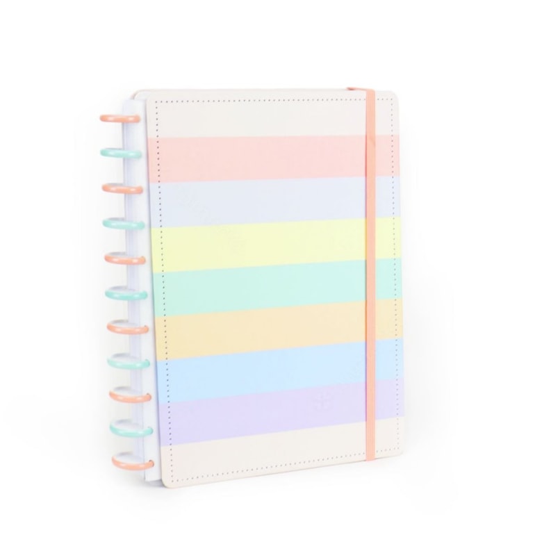 O Caderno Inteligente Arco-Íris Pastel Grande é o caderno dos sonhos para quem ama várias possibilidades e uma papelaria bem completinha!