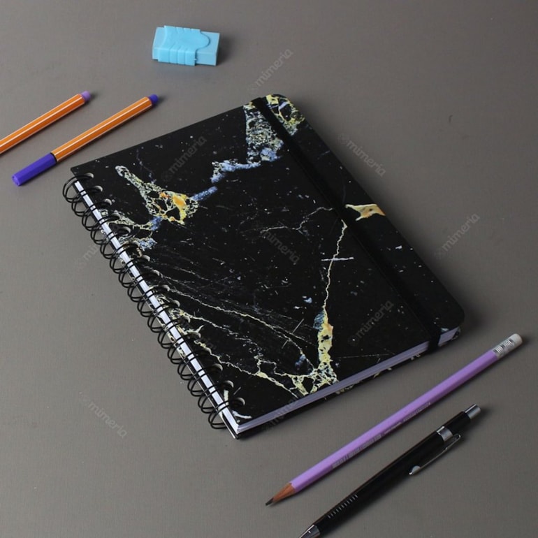 O Caderno Pautado Wire-o Minerais Mármore Preto A5 é super prático e versátil. Ideal para usar na escola, curso, trabalho e muito mais!