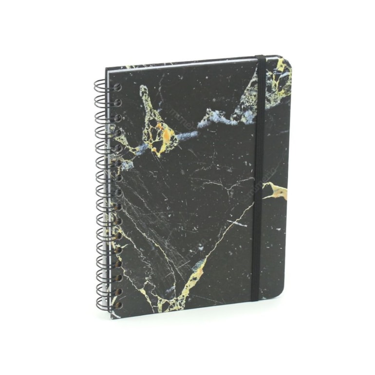 - Caderno Pautado Wire-O Minerais Mármore Preto A5;