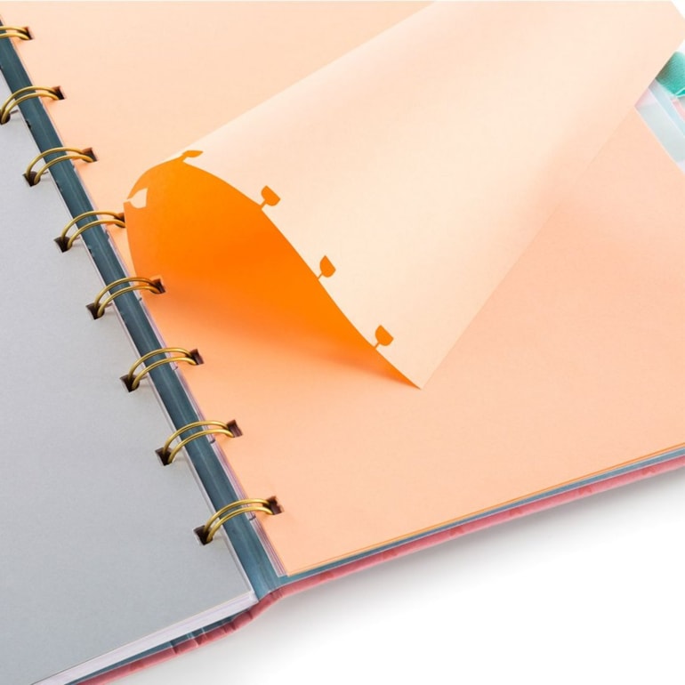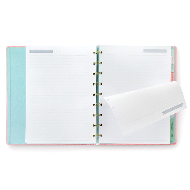 - Folhas e separadores intercambiáveis – que podem ser retirados e trocados de lugar na argola.