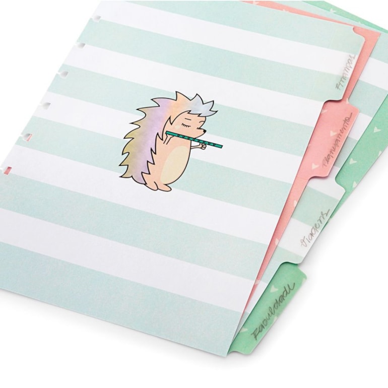 Super completo, o Caderno Porco Espinho Riccio Rosa Ultra conta com 50 folhas brancas pautadas, 4 separadores coloridos estampados, uma régua com 6 sticky notes e 24 folhas coloridas. Além disso, vem com folhas e separadores intercambiáveis – que podem ser retirados e trocados de lugar na argola. Um verdadeiro mimo!