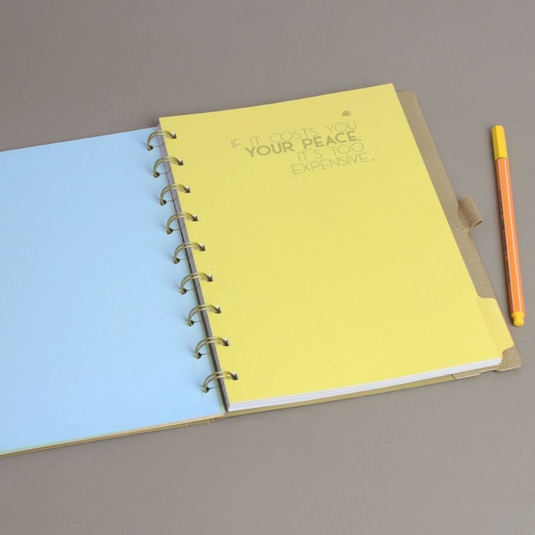 Super completo, ele vem com 70 folhas diversas e 6 divisões coloridinhas com abas revestidas em polyester, o que te possibilita apagar e rescrever o conteúdo delas quantas vezes você precisar!
