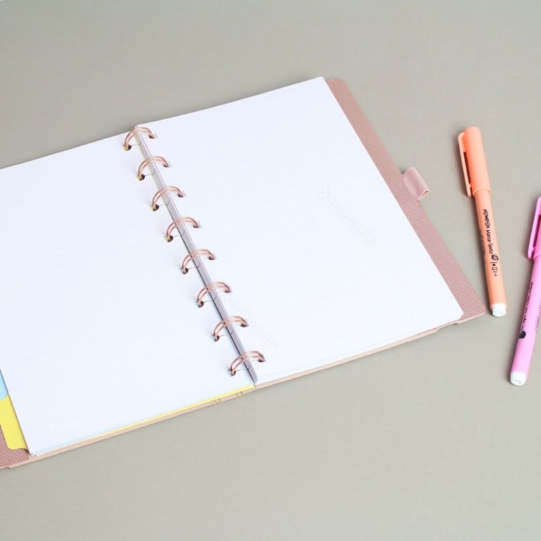 Super completo, ele vem com 70 folhas diversas e 6 divisões coloridinhas com abas revestidas em polyester, o que te possibilita apagar e rescrever o conteúdo delas sempre que quiser!