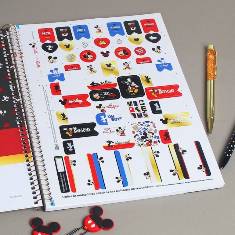O Caderno Universitário Mickey Take a Nap 80 Folhas vem com um envelope e uma folha cheia de adesivos fofos e personalizados, ele é incrível para ser usado na faculdade, escola, curso, trabalho e onde mais você quiser, é o presente ideal para uma amiga querida!