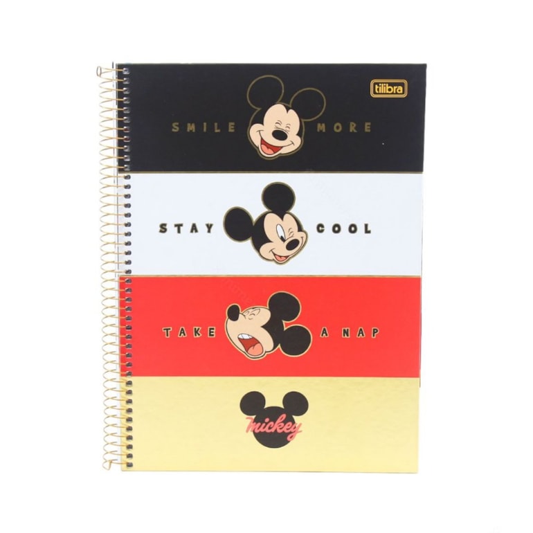 O Caderno Universitário Mickey Take a Nap 80 Folhas é o mimo ideal para quem ama Mickey Mouse e sua turma! Ele vem estampado com quatro fachadas, sendo uma preta, uma branca, uma vermelha e uma dourada, todas desenhadas com o Mickey fazendo expressões diferentes e com frases importantes escritas em cada uma delas!