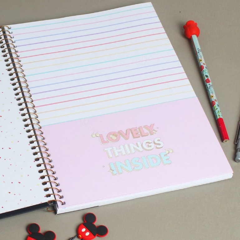 O Caderno Universitário Minnie Collect Moments 80 Folhas vem com um envelope e uma folha cheia de adesivos fofos e delicados, é incrível para ser usado na faculdade, escola, curso, trabalho e onde mais você quiser, é um mimo incrível!