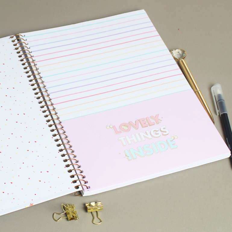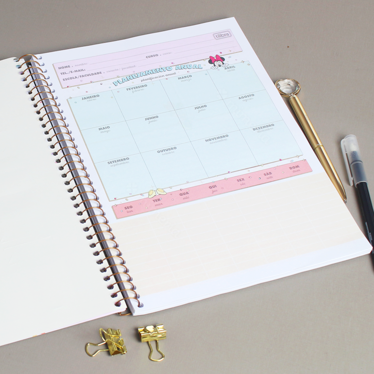 Super completinho, conta ao todo com 80 folhas pautadas distribuídas em uma matéria, seu acabamento é em espiral dourada e ele ainda possui uma página com espaço para organizar todas as suas anotações, tendo campos para planejamento anual e semanal. É tudinho o que você necessitava!