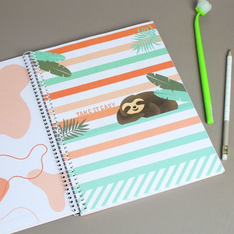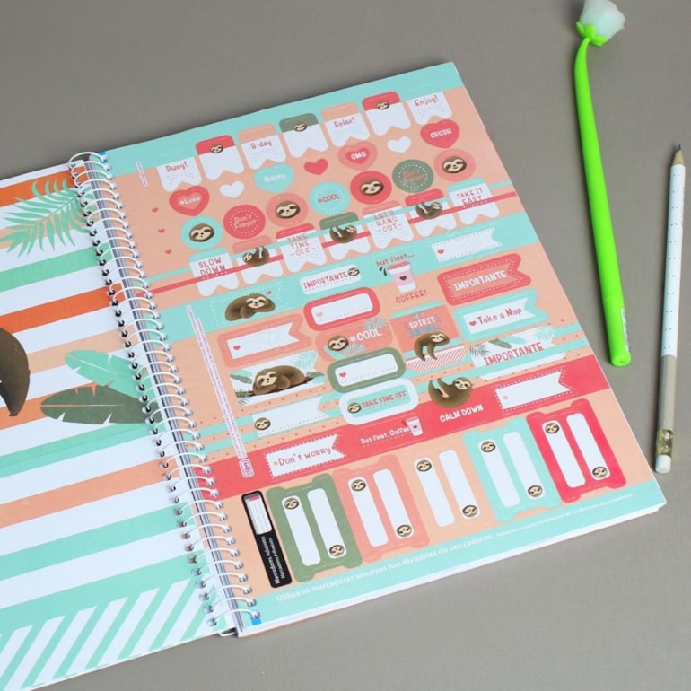O Caderno Universitário Nap Nap Calm Down 80 Folhas vem com um envelope e uma folha cheia de adesivos detalhados e com uma vibe tropical, é incrível para ser usado na faculdade, escola, curso, trabalho e onde mais você quiser!
