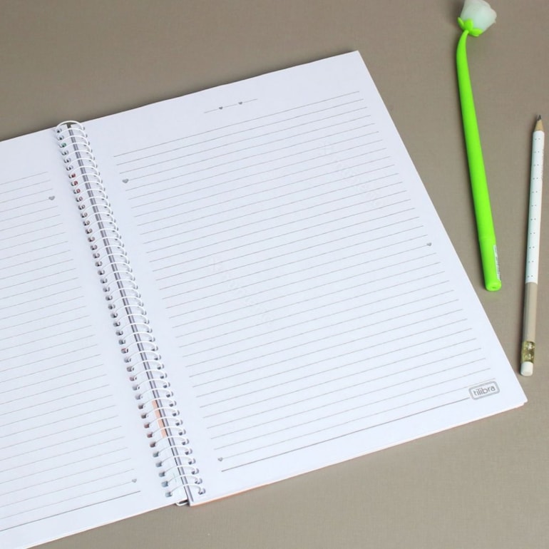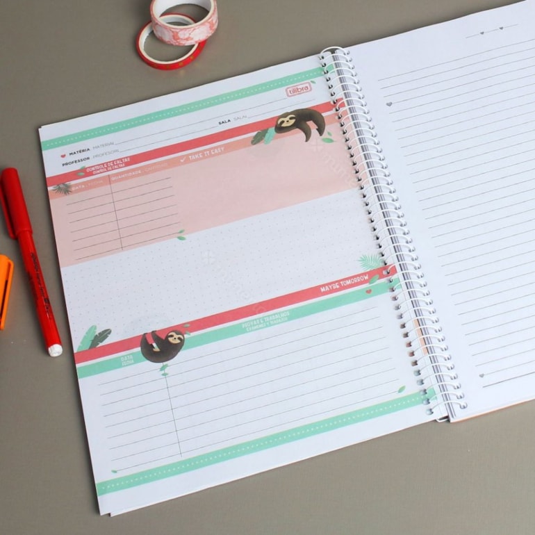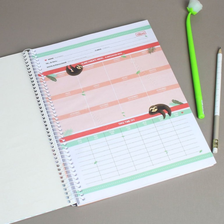 Super completinho, conta com capa dura e vem ao todo com 80 folhas pautadas, distribuídas em uma matéria. Ele tem acabamento em espiral branca e ainda possui uma página super espaçosa para organizar todas as suas anotações, tendo campos para planejamento anual e semanal! É exatamente o que te faltava!