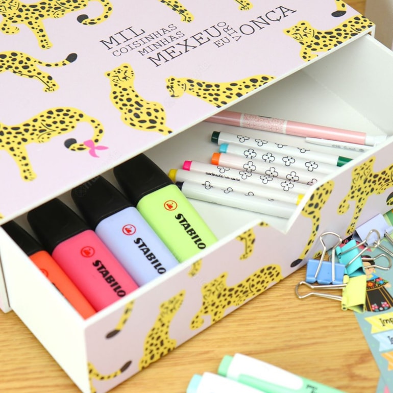 Versátil, esta caixa é ótima para guardar coleções de materiais de papelaria, cartas, fotos, bijus, acessórios, maquiagens e o que mais você imaginar. Não é perfeita?