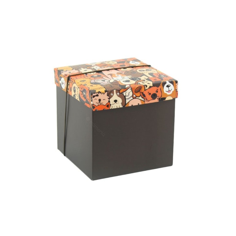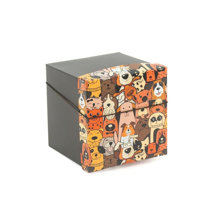 Presenteie seus mimos com a linda Caixa Tampa com Elástico Cães Urbanos Cubo P Fundos Diversos.