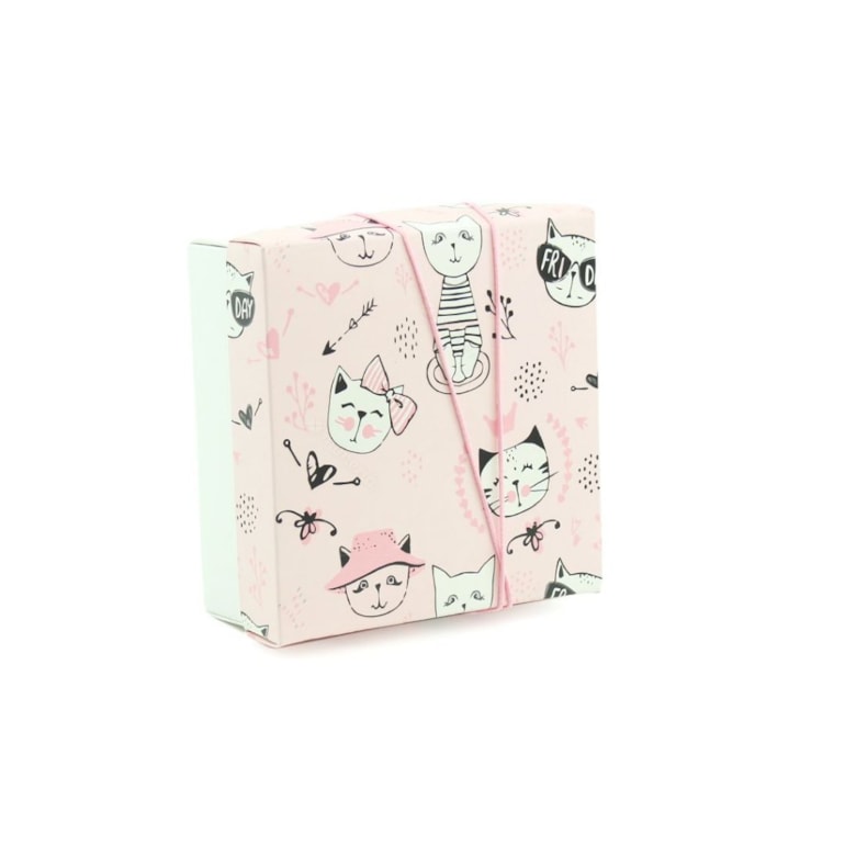 Se você quer surpreender na hora de presentear quem você ama, use a Caixa Tampa com Elástico? Gatinhas Miau P Fundos Diversos.