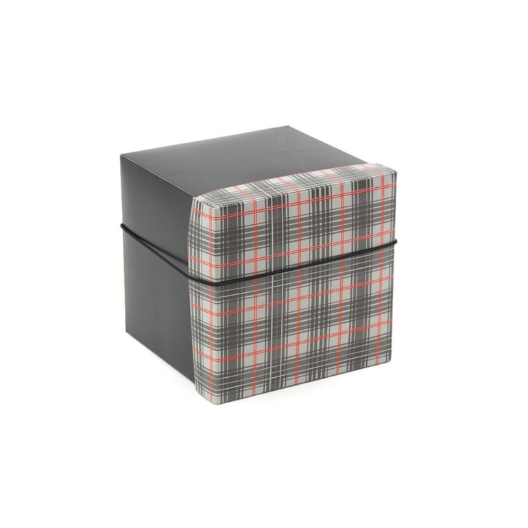 A Caixa Tampa com Elástico Xadrez Cinza e Vermelho Cubo P Fundos Diversos é feita em papel cartão, super resistente para acomodar seu presente, e sua tampa já vem com elástico para fechar. De tamanho pequeno, essa caixinha é ideal para mimos pequenos e médios.