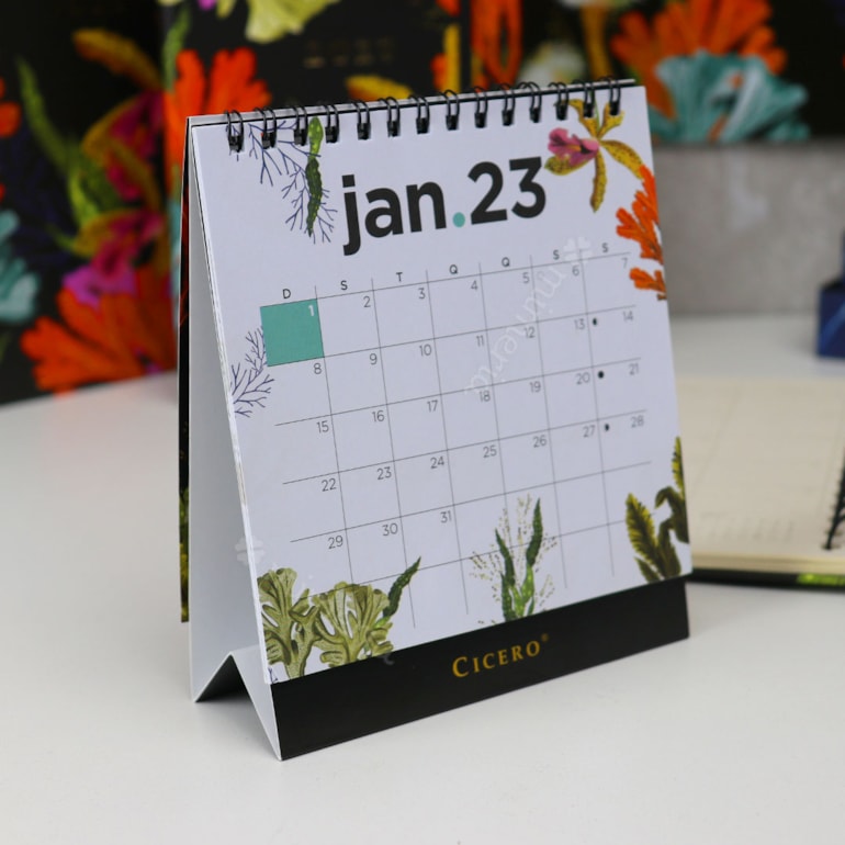 O Calendário de Mesa 2023 Oceano Profundo vai decorar a mesa de trabalho ou estudos e organizar todos os dias do mês de maneira prática estilosa bem ao alcance dos seus olhos.