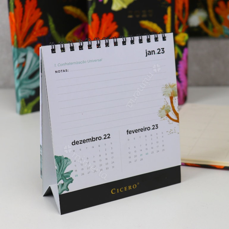Ele conta com um mês por página, marcação de feriados e fases da lua, espaço para notas em seu verso, dois mini calendários dos meses anterior e posterior. Não é tudo o que você precisava? Também vem com calendário de 2024. O Calendário de Mesa 2023 Oceano Profundo tem capa estampada com lindas algas marinhas num fundo escuro inspirado na profundeza de um oceano. Lindo, não? Você vai amar!