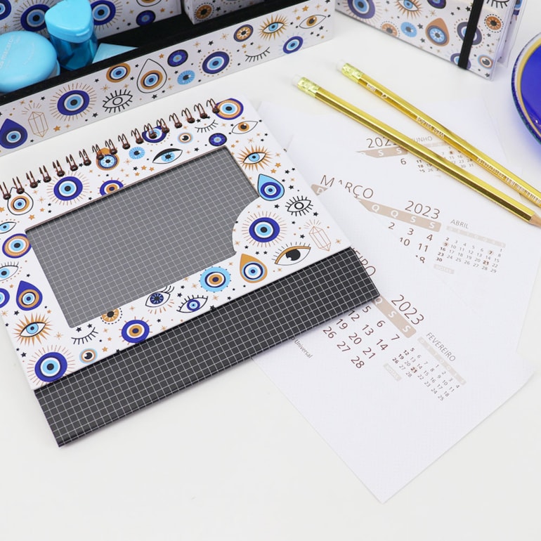 O Calendário de Mesa 2023 Olho Grego Branco é maravilhoso! Perfeito para começar o ano com boas energias!