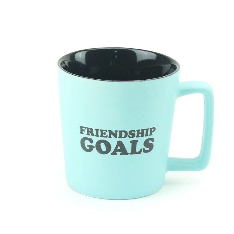 Produzida em cerâmica, essa caneca possui excelente qualidade e tem capacidade para até 400 ml, ela vem com a frase “ Friendship Goals” ( Meta de amizade) e conta com um fundo super fofo, todo na cor azul clarinho com acabamento fosco e estampa dos personagens, ela é incrível!